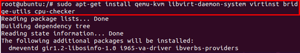 sudo apt-get install qemu-kvm libvirt-daemon-system virtinst bridge-utils cpu-checker
