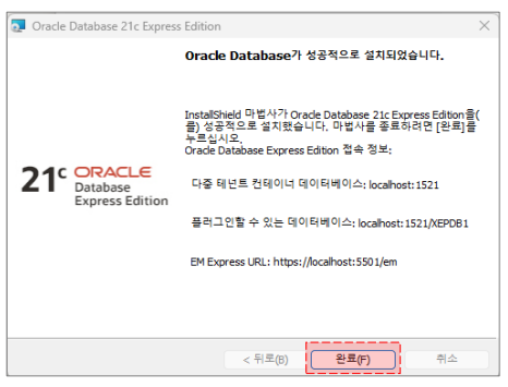 위 순서대로 이행하면, Oracle Database 사용하실 수 있습니다.
