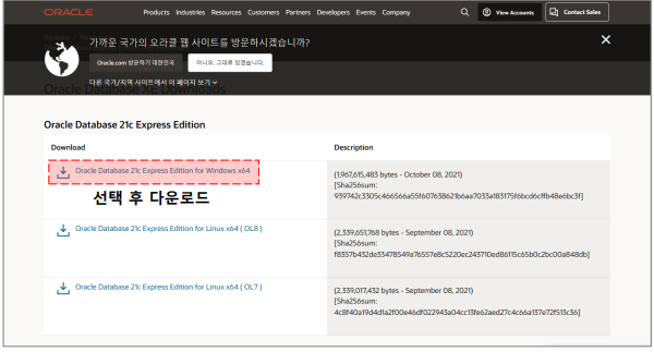 1. 오라클 설치 파일 다운로드