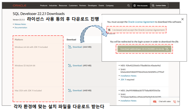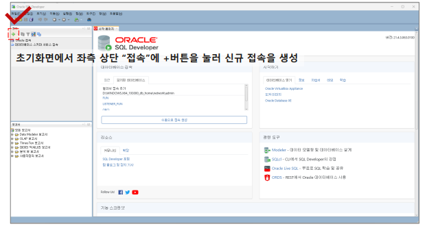 위 과정을 순서대로 이행하면 SQL 실습 도구인 SQL Developer프로그램을 사용하실 수 있습니다.