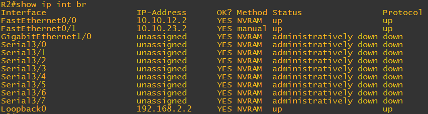 위 그림의 토폴로지와 같이 각각 루프백 인터페이스와 기가비트이더넷에 아이피를 할당하였다.