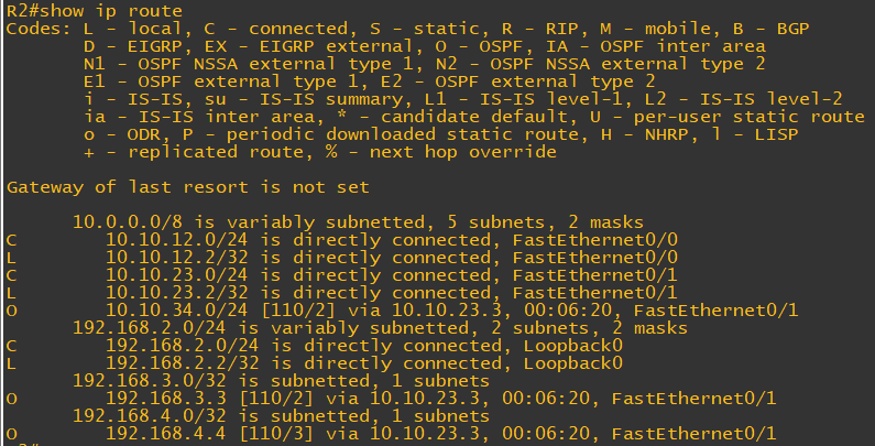 또한, 기본적으로 OSPF 를 R2,R3,R4 설정하여 R2 -> R4 핑테스트 까지 완료 하였다.