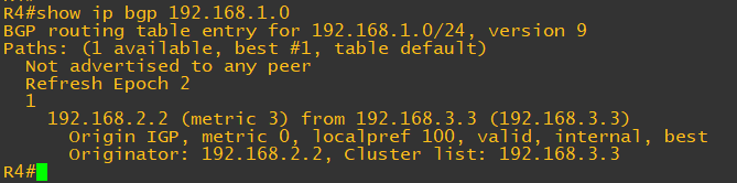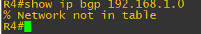 결과적으로 R4의 BGP 테이블에는 192.168.1.0/24 네트워크가 존재하지 않는다.