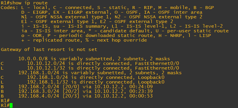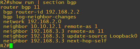 또한 R2에서 bgp 정보를 확인하면 네트워크가 추가된 것을 확인할 수 있다.