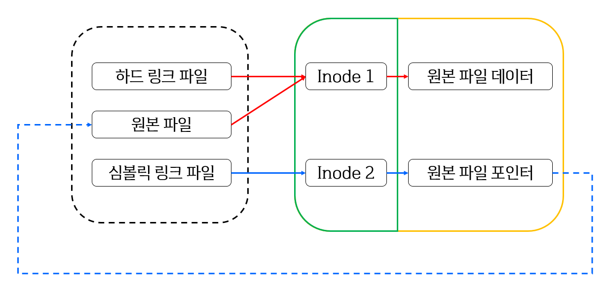 같은 아이노드를 가르킴 따라서 원본파일이 사라져도 사용가능