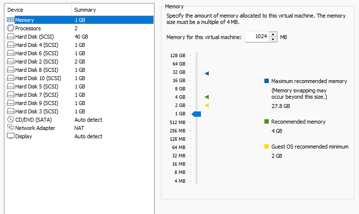 - VM 웨어의 메인보드에는 SATA 4개와 스카시 4개의 슬롯에 연결되어 있다.