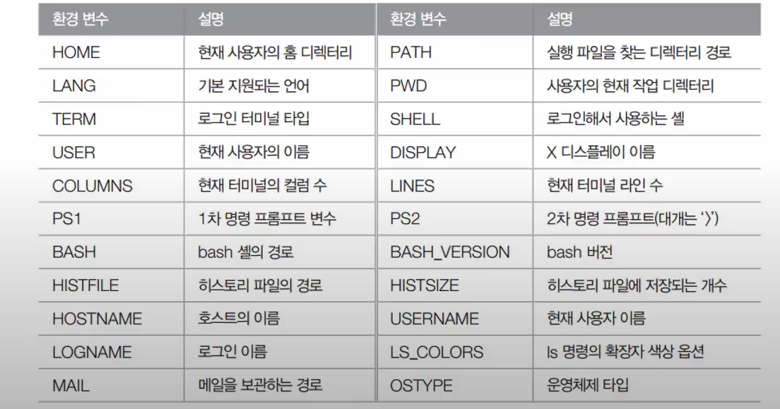 - 셸 스크립트의 구조는 변경할 필요가 없는데 설정해야 하는 값이 상황에 따라 다르다면 변수에 필요한 값을 계속 바꿔가는 방법으로 프로그래밍해서 다양한 상황에 대처할 수 있다.