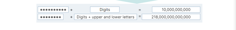 예를들어, 길이가 10자인데 10자가 모두 숫자인 비밀번호를 생각해 보세요. 10자리 비밀번호에는 100억 개의 순열이 가능합니다. 이와 대조적으로, 숫자와 대소문자를 결합한 8자리 비밀번호는 218조 개가 넘는 순열을 가지고 있습니다. 길이는 두 글자 더 짧지만 후자의 암호는 전자보다 훨씬 강력합니다.